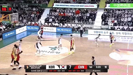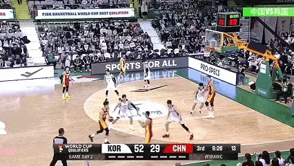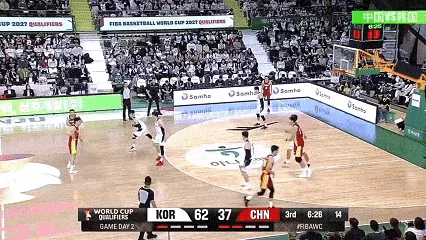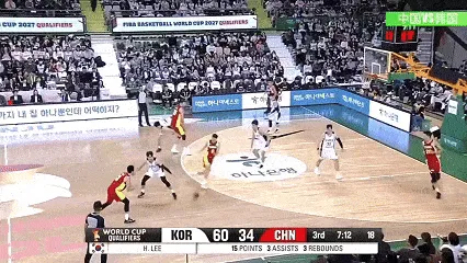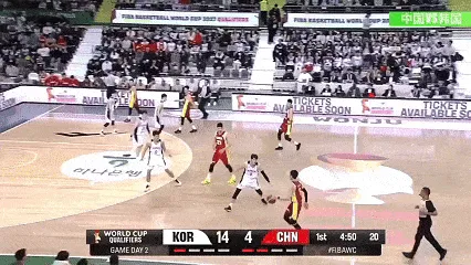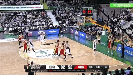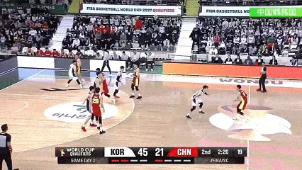 第十球一,出现情下况,面对队国韩联防势态,做出择选,进行弱强侧转移,周琦三与宁,二者道一,执行ts了ep-upp &r(上提挡顺下拆)战术,于此此情景中,这里在琦周掩护际之,亦还另上加外了瓦莱掩乔护。