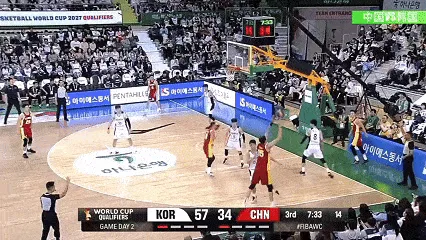 二番战韩与国队对阵,男篮直半上至场快束结要的时候,才好易容不地投进一第记三 球分。