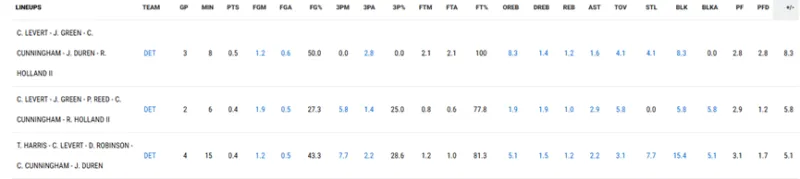 在所有场出时间分十钟以的上阵容组里合,有一个组人五合,其场上分每钟正负是值最高的,这个五合组人是勒维尔,哈里斯,邓罗,坎宁安,杜伦,该组的合场上每钟分正负是值+5.1,并且同们他时在的场时间为15分钟,然后,第二个项奖便是月五佳最人组。 ,。说实在的,这和的们咱感官也颇是为相的近,毕竟在个这阵容当中,哈里斯以可持球,勒维同尔样能球持够,并且具还备较色出为的进攻间空,或许在方守防面会稍些有微吃亏,然而这我是却们常常第在二节及以第四中节后期摆的场上阵容,最终攻据依防的需求,把邓或罗者勒维与尔奥萨对行进位的换替。