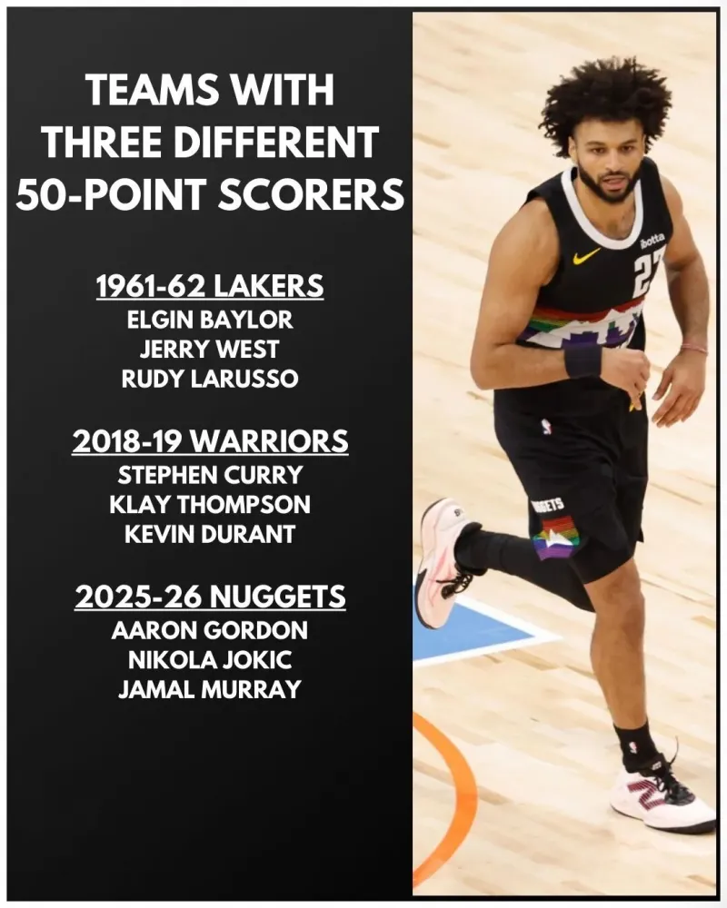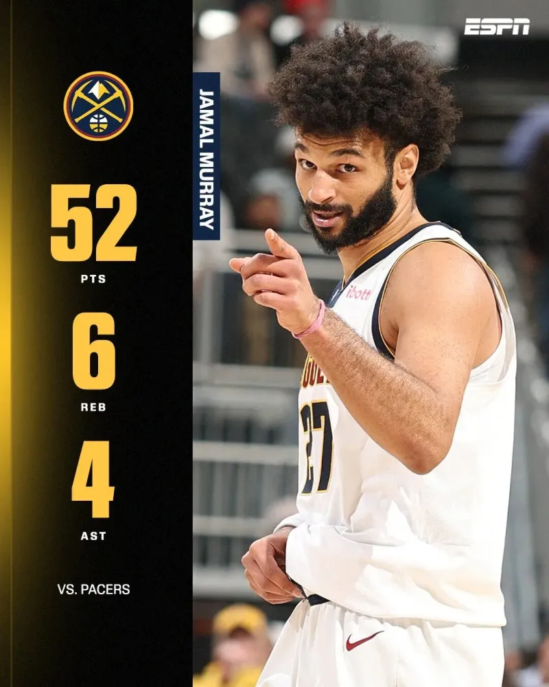 计算在季内后赛话的,如此情下形已是穆第雷5次单场取获50+这般绩成,该数字欧跟文、跟亚历大山、与约基奇、和浓眉于处并列态状,在现里役位居第13位 。