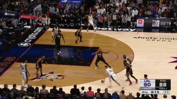 侧翼到看格莱来斯姆包夹,立刻分侧弱给的文森特,三分中命