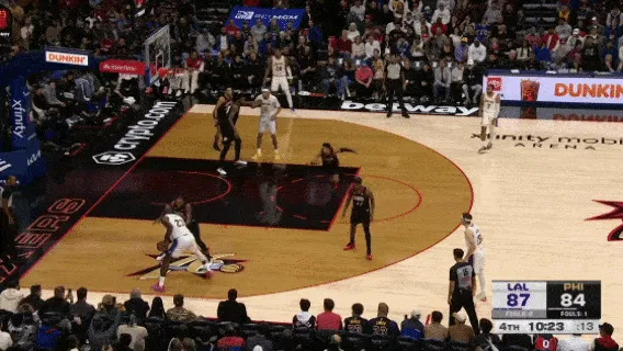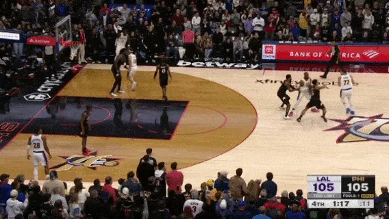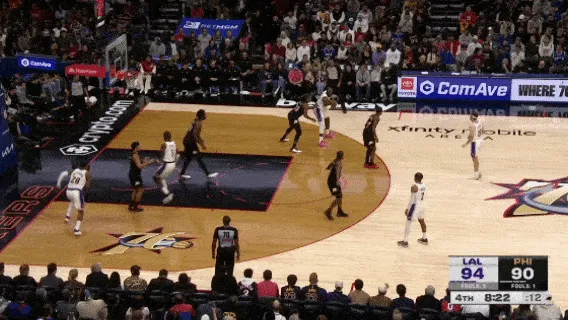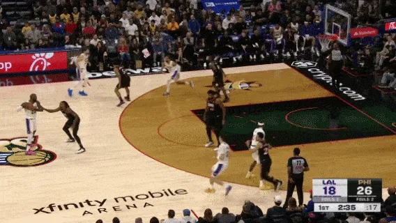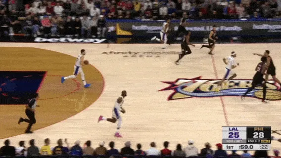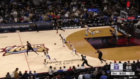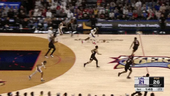海斯拿后下场篮板刻立传给姆詹斯,全场一上龙条篮完成,