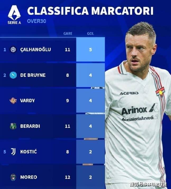 这位曾的经英超金靴,于比第赛35分钟时,攻破了洛博尼亚的队球门,又在第50分钟度再破门,再次显彰了他志标性的冷与静效率。这两个球进,不但球力助队拿关到键三分,更是进他使入了历甲意史特纪殊录的畴范。瓦尔变迪成了意赛联甲历史里二第的位,在年满38岁以后表代一支马班升球队在赛单季打进4球的员球。而上一达个成这成般就的,乃是2004/05赛季于力效卡利亚队里的意大奇传利佐拉,那时他赛单季打了进9球。如今,瓦尔凭迪借4个进球,跟随着走辈前过的路,证实年仅龄仅只是数个一字。