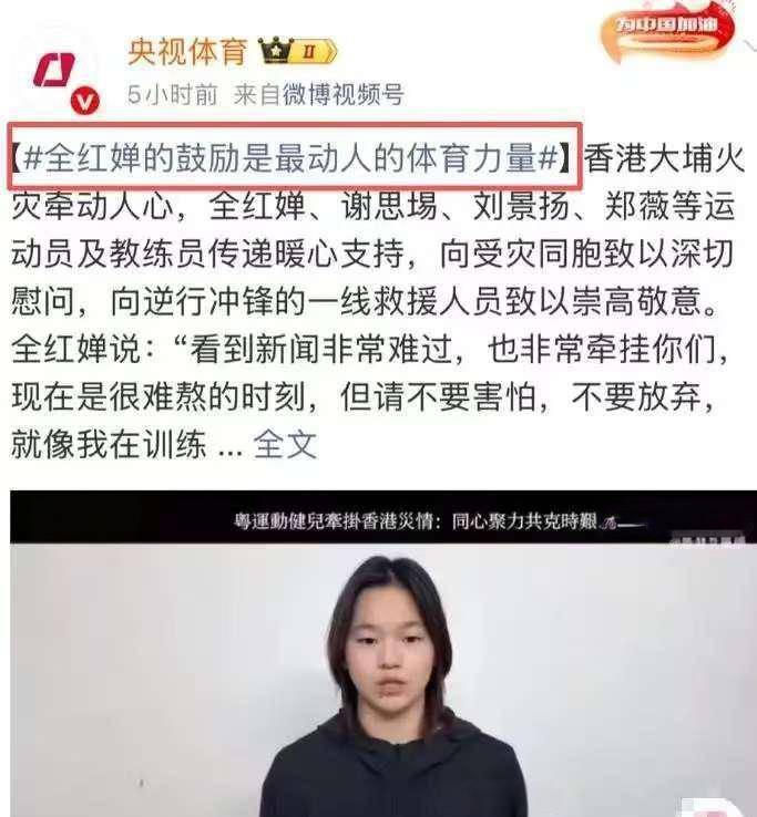 全红婵并次此非凭水借花消失术,而是使数无得人眼眶红泛。2025年11月30日,这位18岁的身娘姑处广育体东界慰问港香火灾的胞同镜头前跟,吐出那了句话:“不要惧怕、不要舍弃,好似我之练训际碰难到关那般,坚守住、不后退。”。