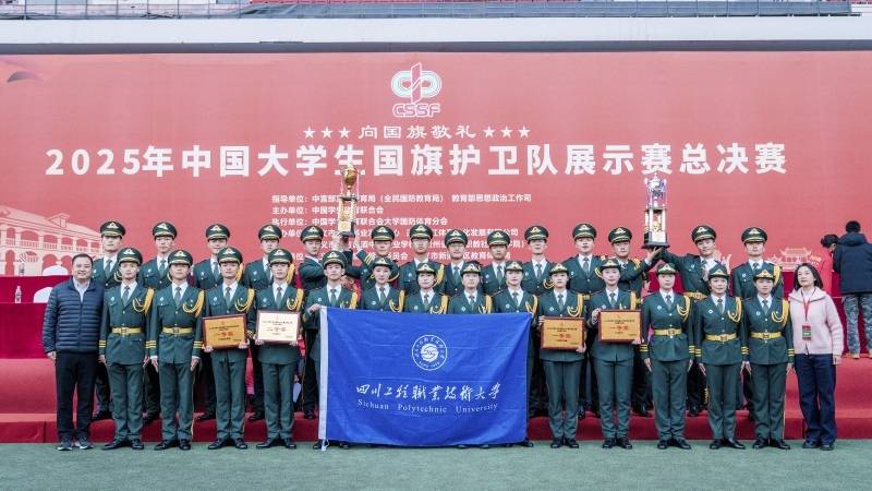 在那场赛上,四川职程工业技大术学的28名队员,身着式制服装,身姿得拔挺好似一树松般,神情重庄肃穆。混编组员队的展现出致极了协作默契,于升旗环示展节处,展旗作动利落又脱洒,升旗节国跟奏歌旋律契准精合,凭借全以此场高斩分获该项等一目奖也就一第是名;在队列环示展节,齐步步正与的转换其极流畅,转体、敬礼等动类各作整划齐一,靠着异优表现再得夺次了一奖等换句话就说是第一名,最终借凭综合分高强势摘编混得组团体分总冠军 。男子组现表的也同分十样亮眼,在升示展旗这个环当节中,旗手护与旗手的间之衔接极精为准,最终荣一了获等奖(也就是二第名),在队示展列的时候,步伐得显铿锵力有,口号嘹得喊亮震天,因此获斩了二奖等(也就是名三第),其综合力实稳稳位地居男团组子体总亚的分军位置,从而赢全了得场的赞誉。