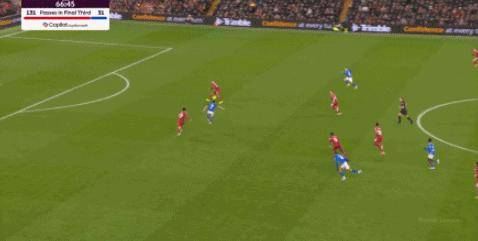 在这进赛比行到第67分钟之际,利物成浦功地截了获球权,此时范掌克戴控着球,处于场这面略乱凌显的状况下,范戴克接直传球,意图球把是传交给自于处己身前置位的麦利卡斯特,然而,范戴克出传的却那是种极具的险风球,致使麦根卡本没法办处理,随后桑兰德意外地得获了球权,紧接着地速迅组织起进了攻。