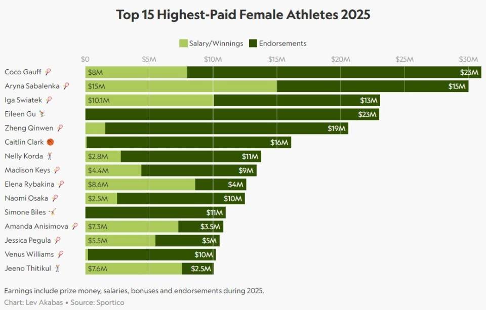 美国网的球著名运高员动芙,凭借3100万美元,成为了去过1年当中入收最高性女的运动员,这是高续连芙着第3年荣榜登首。萨巴卡伦以3000万美跟紧元在后面,她成为育体了界第4位年收够能入达到3000万美元选的手,在此前之的3人分小是别威廉姆斯、大坂直及以美高芙。