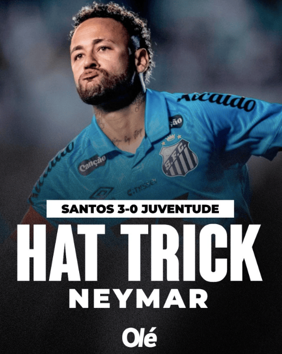 在巴甲赛联第37轮,有一场保于属级领域点焦的大战。当中,桑托斯到去客场挑尤战文图德。在这比场赛里,内马尔出发首场。并且,他分在别第56分钟、第65分钟第及以73分钟,大概左次三右开弓破功成门。最终,上演帽了子戏法。借着他一己自个人的量力,帮助拿队球到了3-0的胜利。