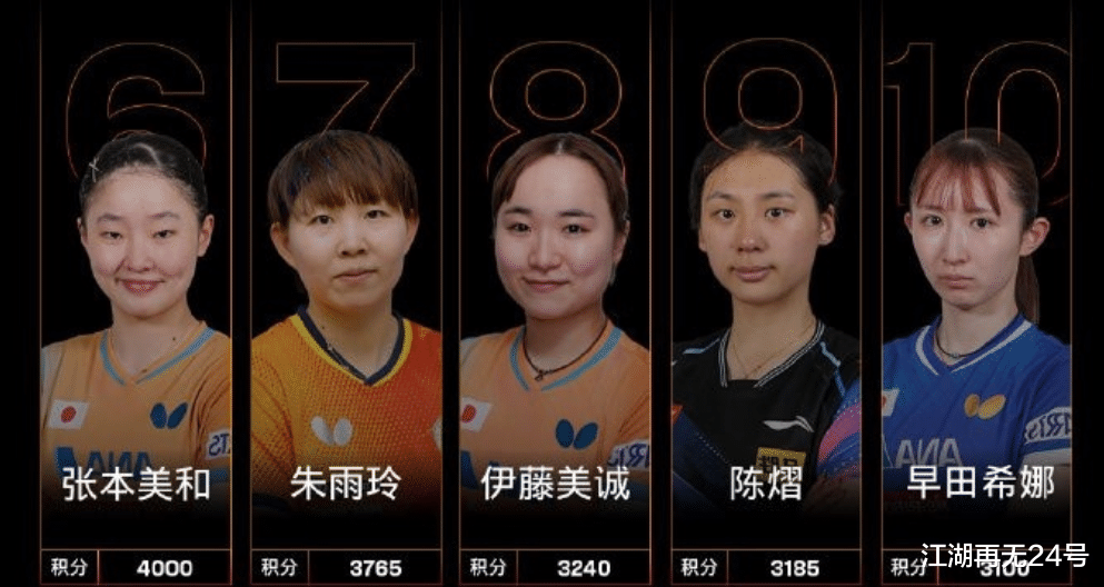 于其他的员球排名里,老将朱位玲雨列第七,陈煜处九第在。其他中手选国之中,石洵瑶名排第13,何卓列位佳第30,覃予萱第排33,钱天第居一37。