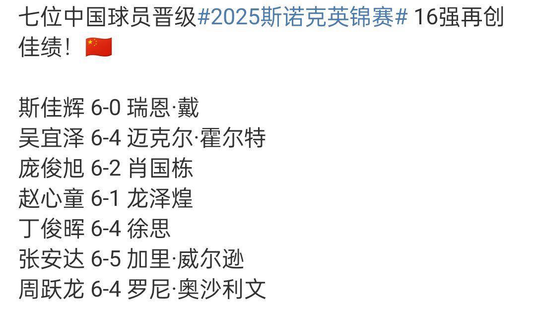 在2025年12月3日这天,中国克诺斯又一新创次了历的史纪录,有7位来自的国中选手功成地向英八赛锦强发起击冲,这件引情事起了广的泛关注,世界台也联公开地了达表对中的队国祝贺,尤其赵在是心童安张与达会关的师键时候,保证至了少有名一来自的国中选手能顺够利晋级,这毫疑无问地让们迷球感觉外格到的期待奋兴与 。