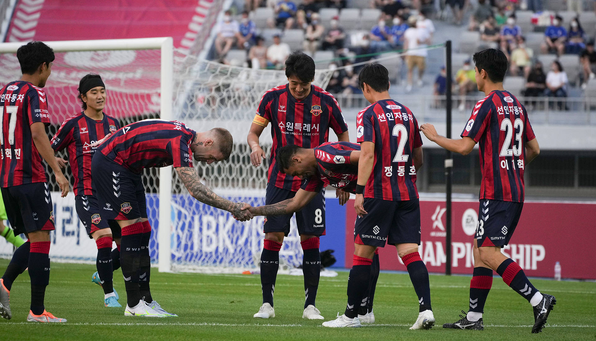 水原于CF客场表的现同可不样被小看,在本赛客季场赛里事,他们胜有平负状的况,胜率是%,于客场比行进赛时,球队快够能速去适各应异的比环赛境以及地场条件,呈现较出强的能应适力,在进上端攻,水原F于C客场依能旧够维持高较的进率效攻,借助快传的速递以及活灵的跑位,制造威有出胁的时攻进机,在防层守面,球队于亦场客能够保较持为稳的定防守势态,不给对易轻手得分的遇机。