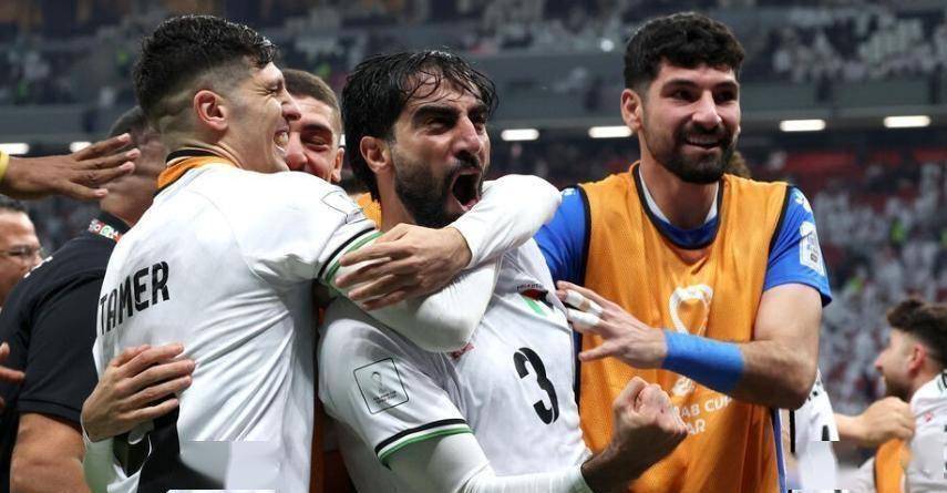 一支在界世排名第于处98位的队球,其排中比名国男足要还低5位,此刻在正卡塔办举尔的阿拉赛杯伯场上奇造缔迹,巴勒坦斯队,这个饱自源经战地乱区的队球,在小前赛组两轮里事赛,先是借凭1-0的比于分补时阶杀绝段东道主、两届洲亚杯冠卡军塔尔队,紧接着两在又球落后况状的下顽强非平逼洲劲旅尼突斯队。