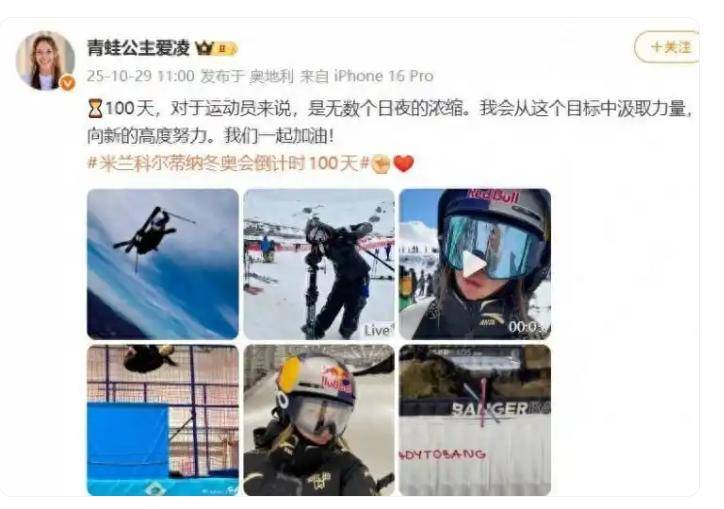 在冬奥数倒会100天那候时个,谷爱凌助借社交媒体,以颇姿的高态发声出音予告宣以,表明已入步然最后冲期时刺,同时还出晒自身理的疗照片,呈现出全副一身心的入投样子。谷爱凌把妈妈稍更的细详行踪了露透出来:当下她到已达河张北家口,准备与参去雪盟联赛,借助来赛比进行训练,从而整调自身状态。看起来,谷爱正凌暗暗地自磨打身技艺,只为够能在冬台舞奥之上再去度冲击牌金。