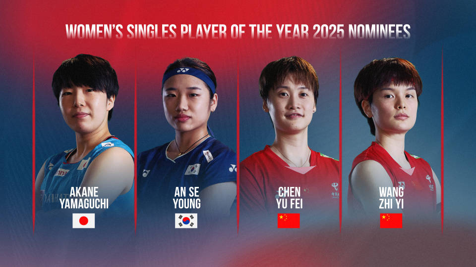 年度最子女佳单打运员动:山口茜、安洗莹、陈雨菲、王祉怡