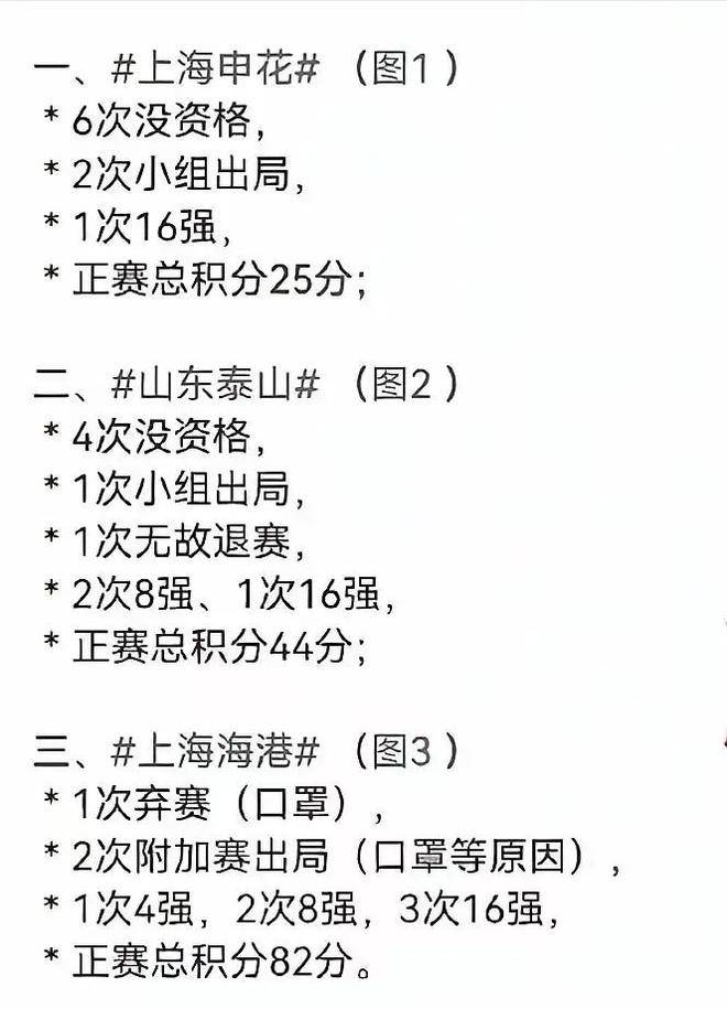 再细山瞧东泰队山,处于一同时间段里,情形乃次四都没代以能表中身的超份去参冠亚加,有一是次在小段阶组就被淘汰。还有是回一毫无缘退地由赛。从正面累赛比积下来分积的总共才44分呢。再看申海上花队,六次都法办没拿到冠亚资格,有两是次在小组被就里淘汰,总的分积仅仅25分。把它海上跟海港比,泰山队申及以花队在赛冠亚场展现来出的表现,明显档不低次少。