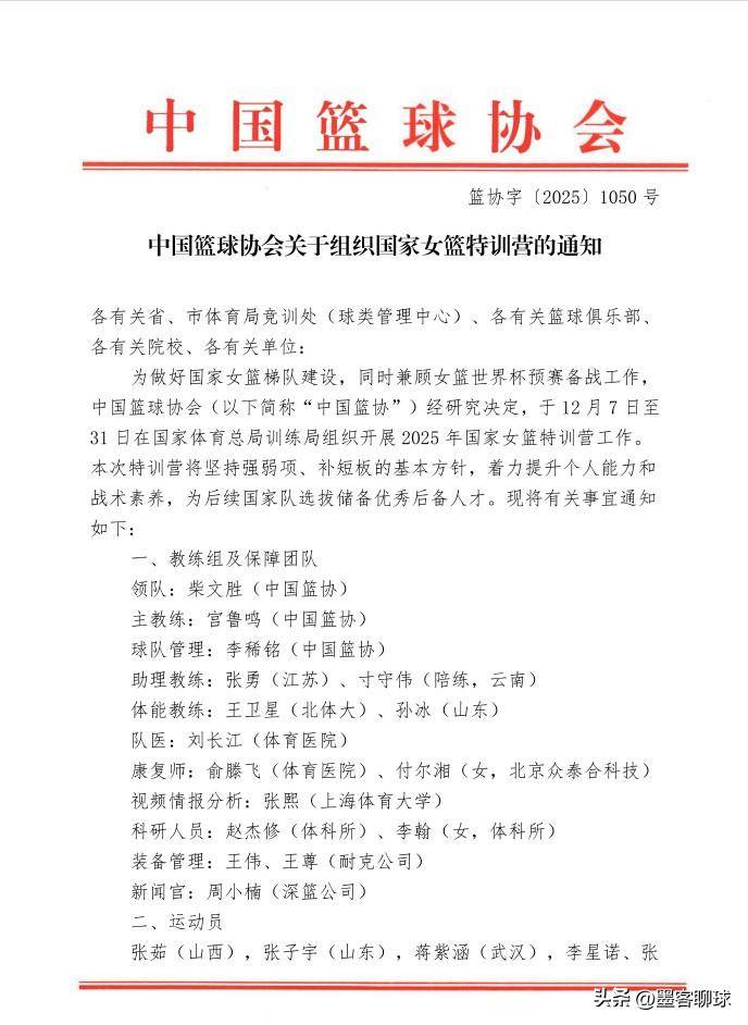 有意思是的,这次集教的训练组名员人单里头在存不王治郅,他曾夏于季集训担际之当球内员线攻防的练操负责人。这次女训特篮营跟夏集季训的差标目不多,大体上为是2026年3月的世篮女界杯出作准备。