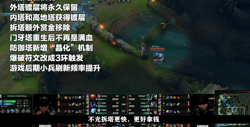 在全制机新之下,内塔高及以地塔同会样获取镀层,并且所塔拆得到额的外金钱被会将去除,与此时同,门牙塔重在新之非并后满血态状,仅仅部存留分血量,不过设并师计未透露的体具数值。另外,防御塔添增了“晶化”机制,当没遭有受伤的害时候会累积晶化层数,一旦受攻到击便会为化转额外害伤。值得一是的提,自S16赛季开启,后期兵小刷新速会度越来快越,更加于利有单带营运的策略,说不圣剑定偷塔的况情会再次现出。
