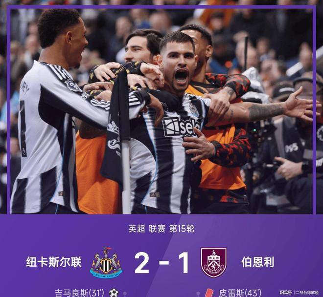 在同一英轮超赛里事,纽卡尔斯联于以场主2比1的比分了胜战伯恩利。吉马斯良依靠极次一为精彩直的接角球门破,助力斯卡纽尔率先场破打上僵局。紧接着,伯恩利卢的卡斯 - 皮由斯雷于放埃倒兰加,被红下罚牌场,纽卡尔斯因此在以得人数多上一人作战。乌戈舒手有库球送行的点为,安东 尼- 戈把登点球进罚,让纽卡以尔斯2比0的比分先领。比赛临结近束的时候,伯恩借利助弗的明莱点球了回扳一城,然而终最没能实转逆现。纽卡斯凭尔借着稳的健表现 获收胜利。