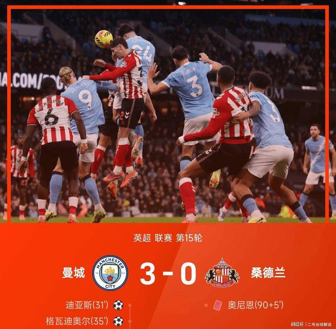 在2025年到2026年赛季英的超联第赛15轮里,曼城于场主对战桑兰德,上半时的场候,迪亚斯着靠一脚为极精彩的打射远破了上场僵局。之后,接福登的球角格瓦迪头尔奥球破分得门,使得城曼以2比0领先。下半场,接谢基尔传中的头登福球得分。而奥在恩尼补时段阶因为被规犯红牌下罚。最终,曼城是3比0战胜德桑了兰,积31分继居位续英超榜分积的次席,仅仅领后落头羊纳森阿2分。