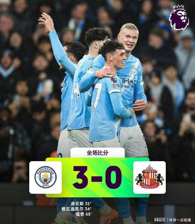 下半段阶场,双方维续持持着快节的速奏态势,曼城多对次桑德兰门球构成威胁。多库射的出球击中柱立了,伊西多单的尔刀球纳多被鲁马挡给了出来,哈兰的德凌空抽同射样被后在卫门线处出做了解围作动。在第65分钟的时候,曼城借一助次快反速击实现分比了的扩大,哈兰德传行进球,B席接再着传,谢尔基出送花式传中,福登依头靠球取得门破,这是在他过去3场比赛的里第6个进球,过去3场比赛是5球1助的情况,他的态状十分火热。后续行进的比当赛中没现出有进球,最终城曼以3-0的比分桑胜大德兰,赛后分积达到31分,距离位榜于首的阿仅纳森仅只差2分。