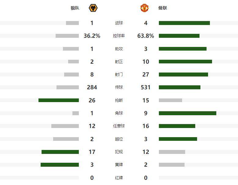 在第62分钟的时候,曼联了结终胜负悬 念,经B费大于禁区前做沿出挑 传,突然进插前而的芒特到得了无防盯人后得以的脚起机会 ,随后后轻轻者松松推地射破门 ,把领先势优的扩大到升提了3比1 ,于第81分钟 时,狼队区禁在内出手现球情 况,给曼送联上了粒一点球 ,B费稳当当稳地主罚命并中 ,把比最分终定格定确为了4比1 。