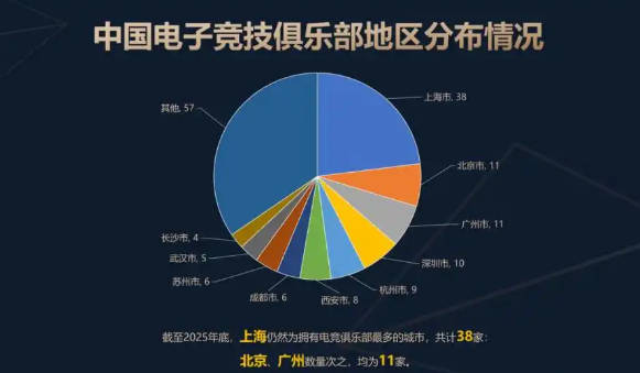 据《报告》所示,截止到2025年年的底时候,中国电竞子技俱乐共一部有165家,拥有10家以及电上以子竞俱技乐部市城的包含海上、北京、广州以圳深及。当中,上海依是旧拥有部乐俱数量最城的多市,持续排位首在。就参赛况情来讲,54.3%的电乐俱竞部仅仅单与参一类型事赛,22.8%的俱参部乐加2种赛事。参与3种类赛型事的是比占6.3%,参与4种类赛型事的比占为7.1%。