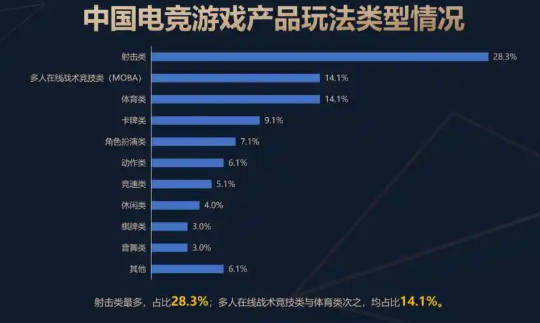 《报告》表明,在中子电国竞技游要主戏产品的法玩类型里,射击品产类所占最例比高,是28.3% 。多人在战线术竞也类技就是MBOA与之比相占比次之,体育样同类占比之次,二者均比占为14.1% 。按照台平进行分类,移动占戏游比58.6% ,客户游端戏占比25.3% ,存在时同具备两本版种的电竞戏游占比12.1% ,网页游占戏比4.0% 。