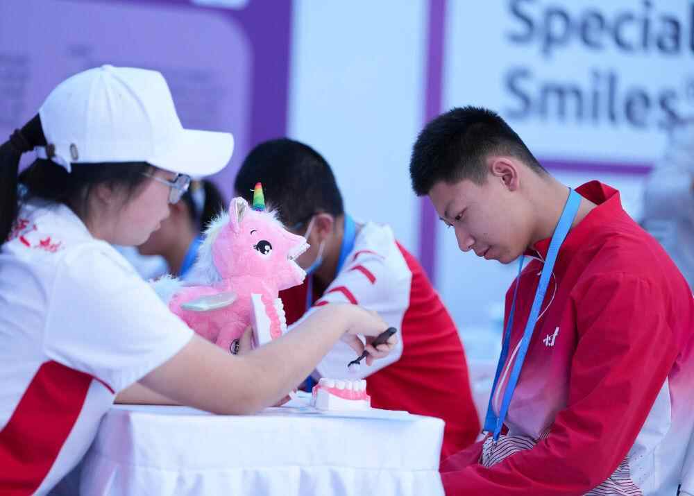 12月8日,于广省东中山市馆育体副馆处之,工作为员人特奥运员动做普及齿护知识相的关事宜,新华社杨者记晨光拍景此摄 。