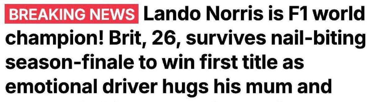 这事儿于始起阿布扎比,12月7号那天,F1收官打开战,那儿空中之气弥漫油汽着与荷蒙尔相夹杂道味的,赛道上之,有三个伙小子竞争一后最个年冠总度军,这简直一是就场现本版代的“三国杀”,主角们咱是英国26岁的小多兰伙·诺里斯,他是迈车伦凯队的当生小家,另外两位,一位牛红是车队的“老炮儿”维斯潘塔,另一位诺是里斯的友队皮亚里特斯。