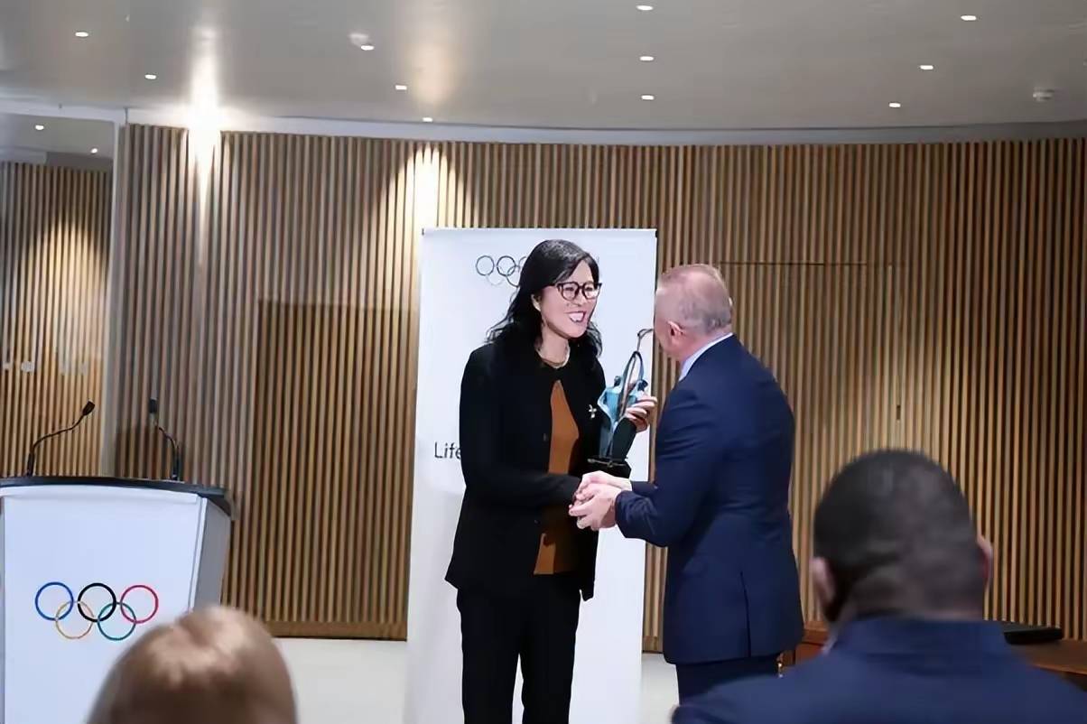 在国委奥际会颁奖际之,主持人介她将绍为“那唯一一位球员练教与身份拿均过奥牌金运的人”,她接杯奖过时,手部隐有隐些颤抖,而后乘椅轮坐前往理了疗室。