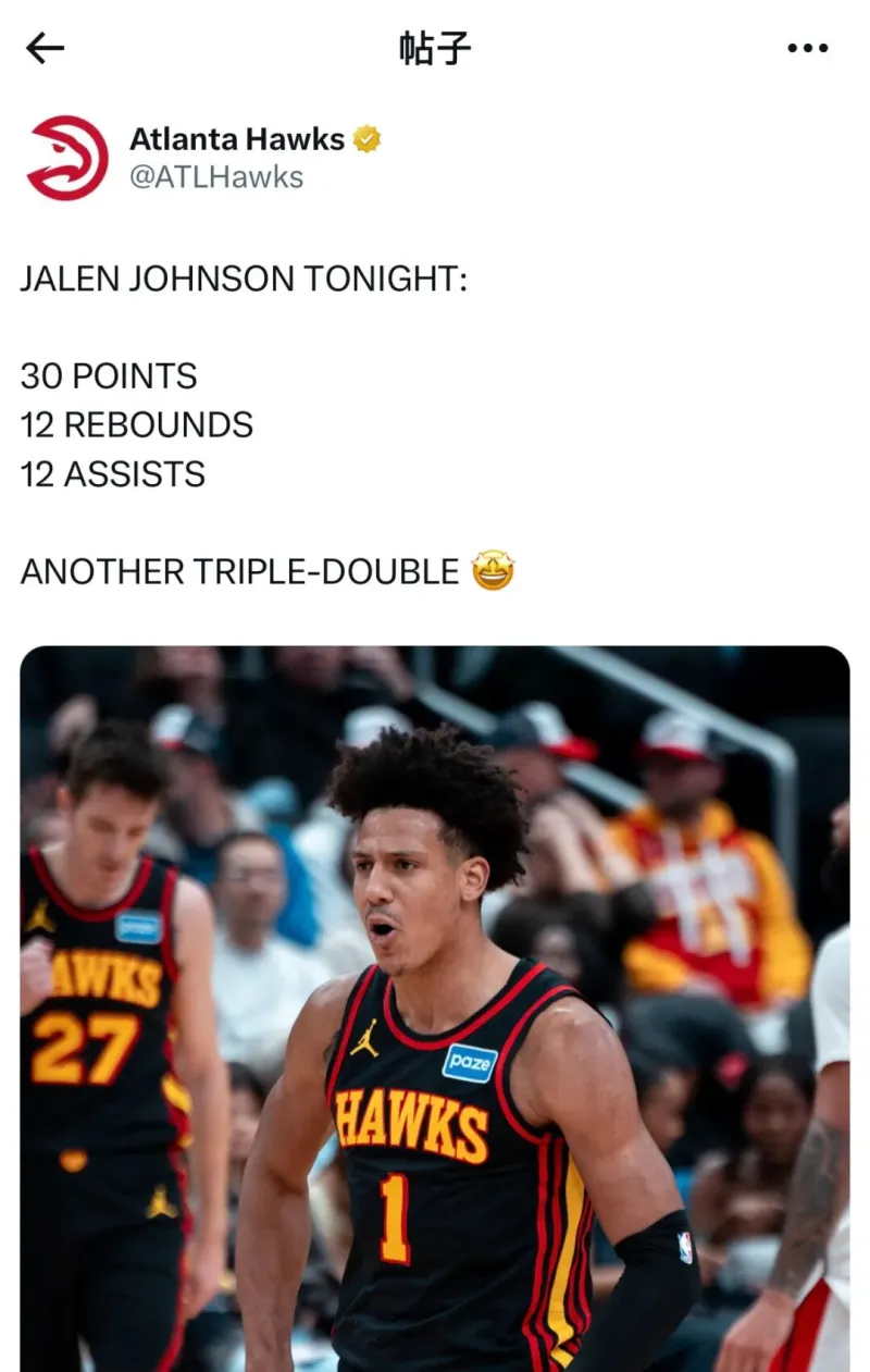 在这场两比赛束结之后,老鹰官于方平晒台出相关片图,并怀着慨感之情说道:在过去的24小时里伦杰的约翰逊,其得分了到达51分,篮板数为量30个,助攻次是数28次,天呐()。