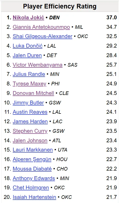 选择以量衡MVP要重的标准P一之ER值手入(历年EPR值处首于位的选获手取MV概的P率相高当),约基以奇37.0的数毫值无悬念占地据榜之首位,紧随之是的字母哥,其数值为34.7,而后历亚是山大,数值是32.5,至于东奇契,“仅仅”拥有29.2的数值。