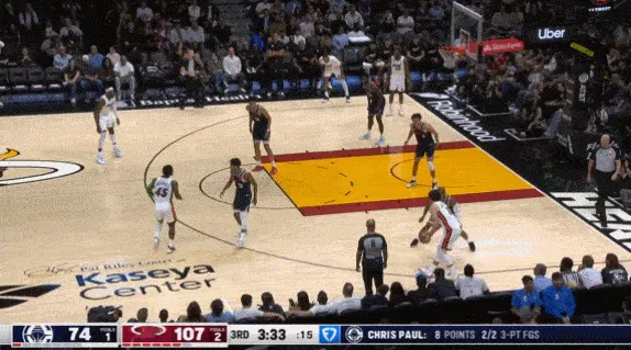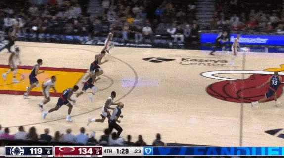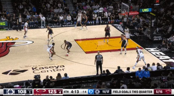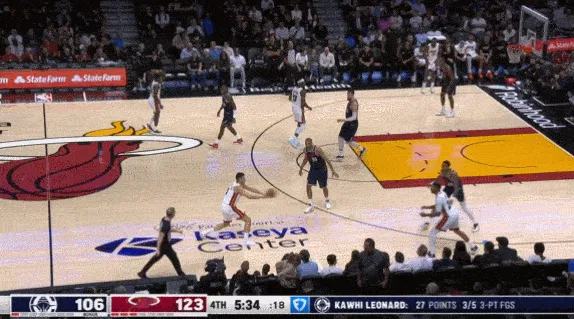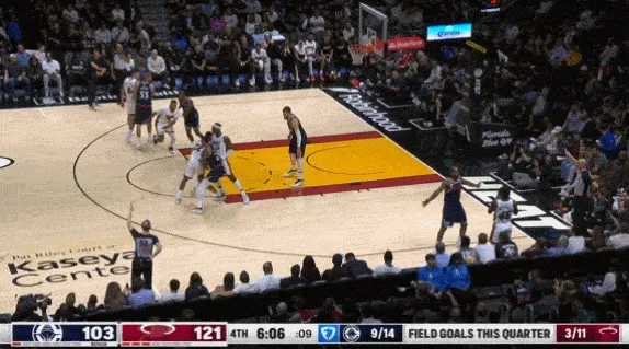 下半开刚场始就厉加更害,热火靠德阿着巴约、鲍威尔、希罗威及以金斯领带的,火力一持直续,在9分钟的时间里,又给打船快了一波36比18,分差一子下到了的大最38分,到三结节束的候时,热火经已以114比82领先快船32分了 。