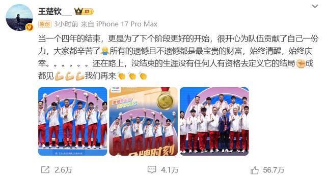 王楚钦全运会总结:未结束的生涯无人能定义结局!成都再战新征程