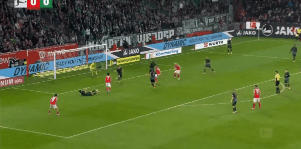 90+2’黄牌-威奇尼格(美因茨) 犯规