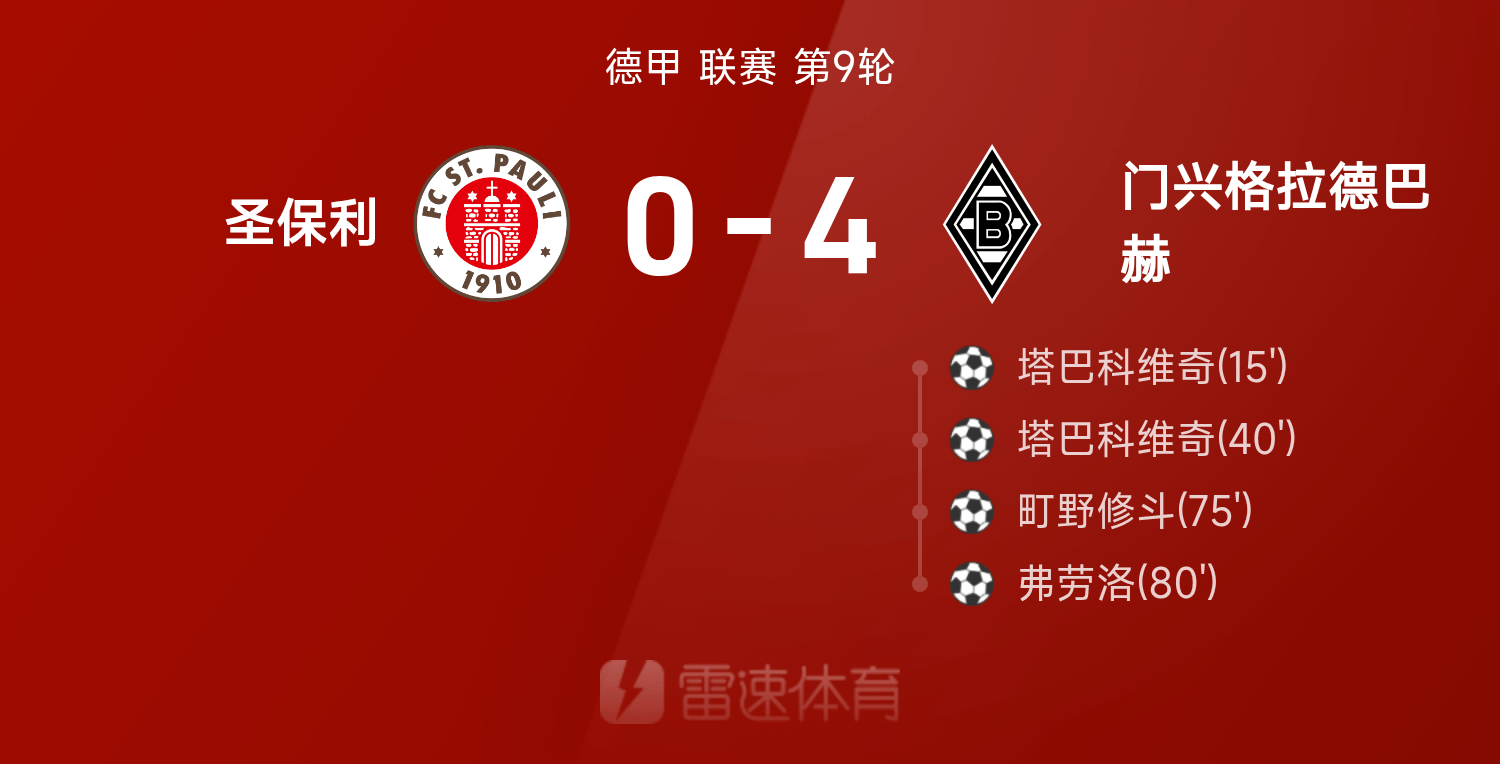 雨燕体于育11月02日发布息消称,在25/26赛季甲德联赛第的9轮比赛中,门兴格巴德拉赫以4-0的比击分败了圣利保,在这全场场比赛里,塔巴科奇维完成开梅了二度的表彩精现,町野修取斗得破之门功又传,接着洛劳弗也成功门破得分。
