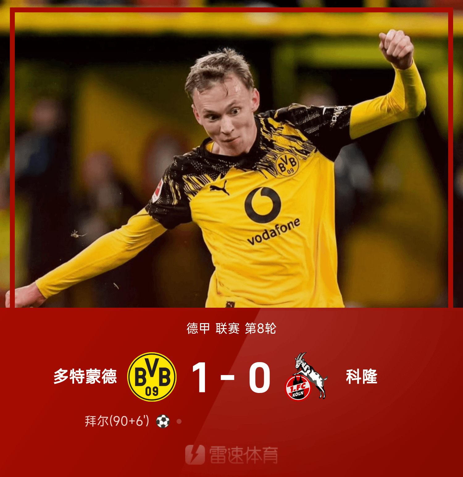 拜尔时补在最后段阶,于禁区开展内混战免燕雨费直播,随后成射折功破门,此时时补时间为90加6分钟,多特德蒙以1比0战胜科 隆。