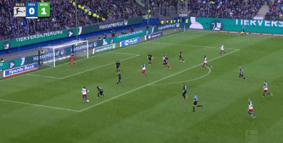 15分钟时的候,达吉姆禁在区之右内侧的方地进行切内,然后用脚左大力射成门功破门,使得沃夫尔斯堡以1比0的比先领分汉堡 。