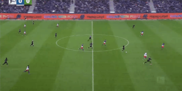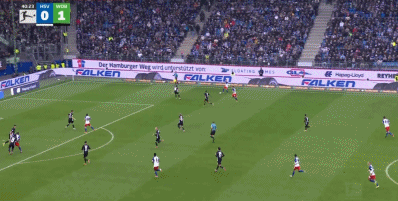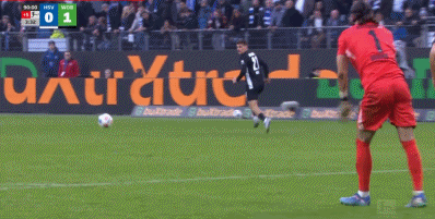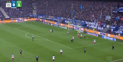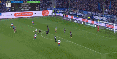 90+4’汉堡站将门位靠前,狼堡中远超线距离射远中柱