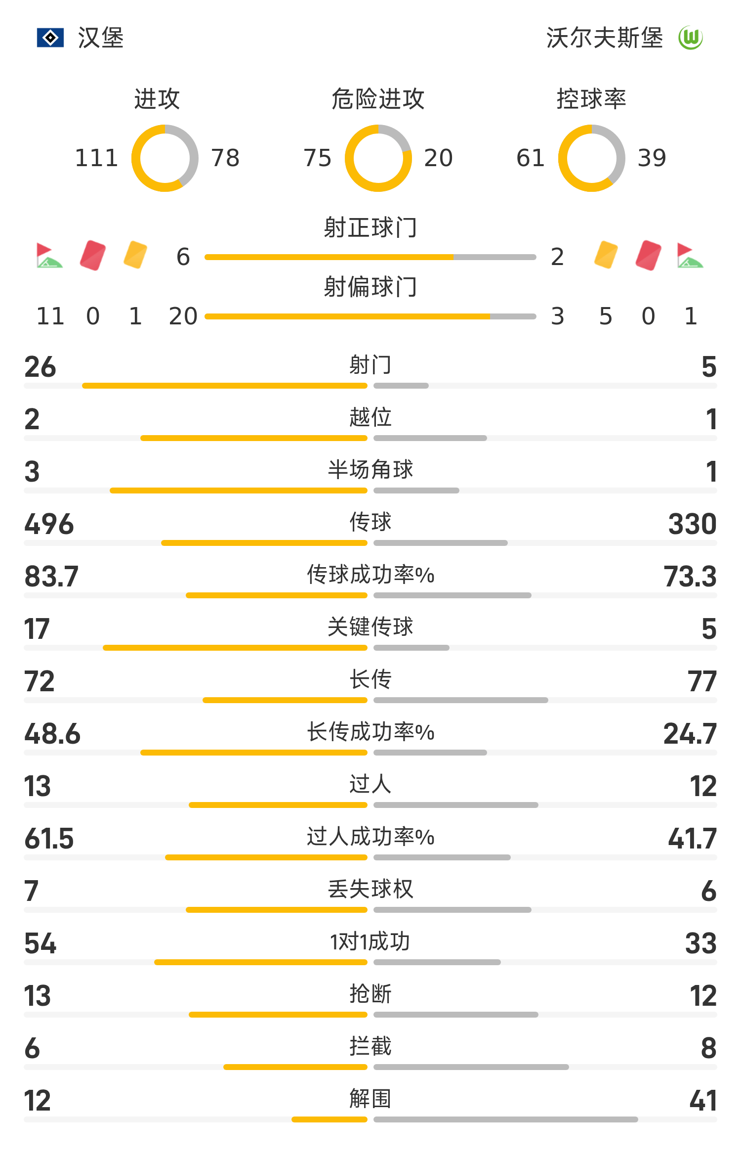 71’汉堡角开球出,波尔前森点头门攻球,皮球稍稍偏出