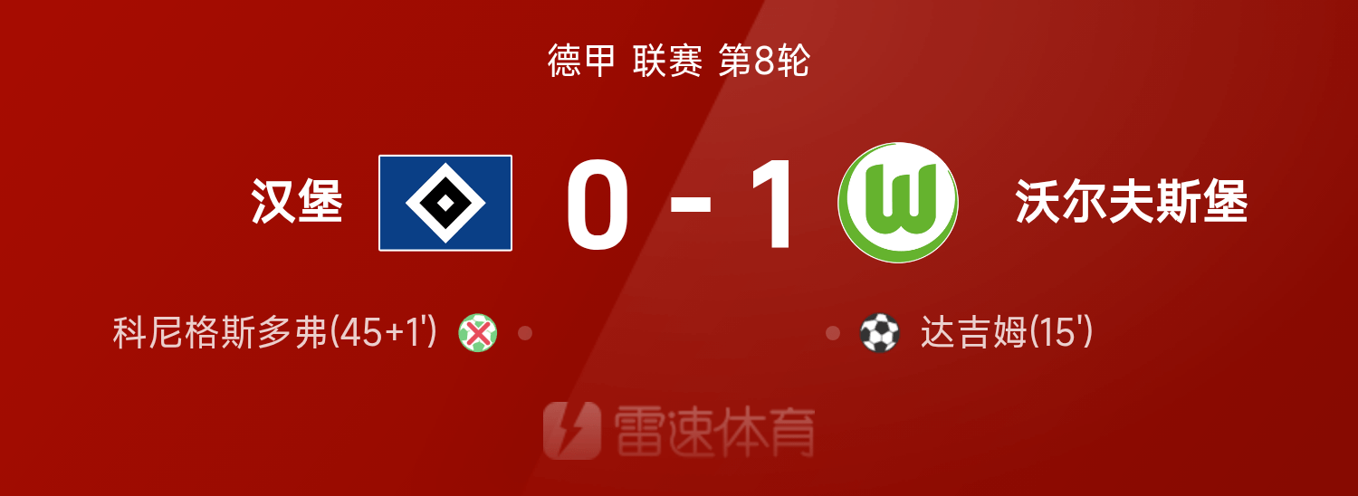 10 月 25 日,雨燕体来传育消息,在 25/26 赛甲德季联赛 第的8 轮中,沃尔斯夫堡以 1 比 0 的战分比胜汉堡,在全比场赛里,达吉现实姆破门分得,而科格尼斯多罚弗失点球。