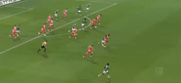 12’布尔克球带杀奔右区禁侧,随后抽被射门将出扑