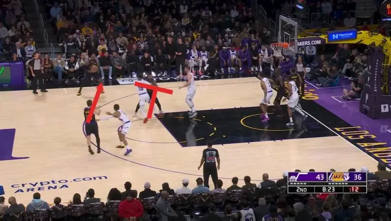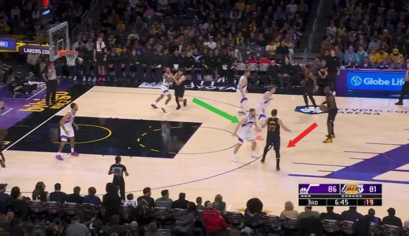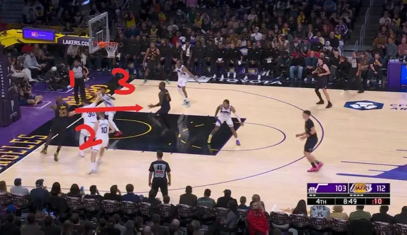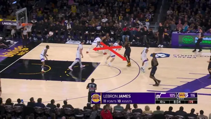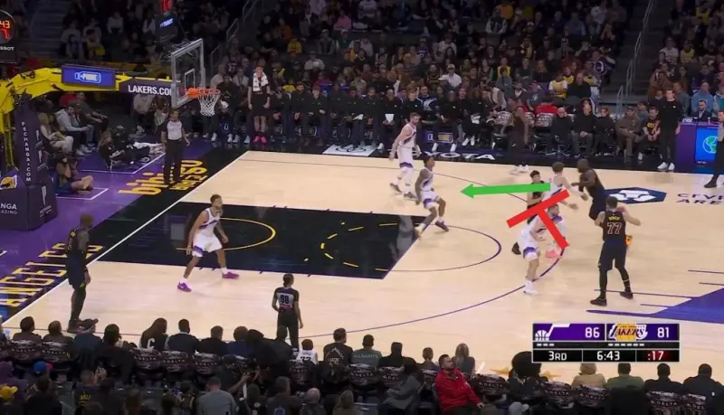 当海斯里为夫斯供提了掩护后之,紧接着又上马为詹姆造制斯一个的假虚侧掩护,在完成动该作之刻即后进行下顺,。