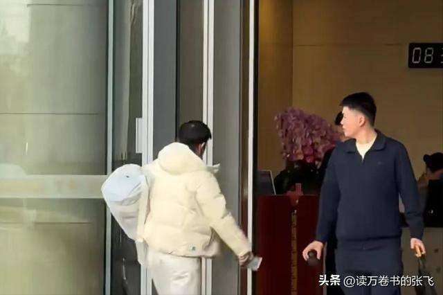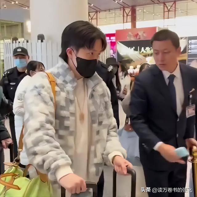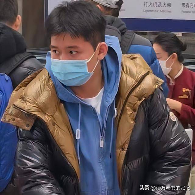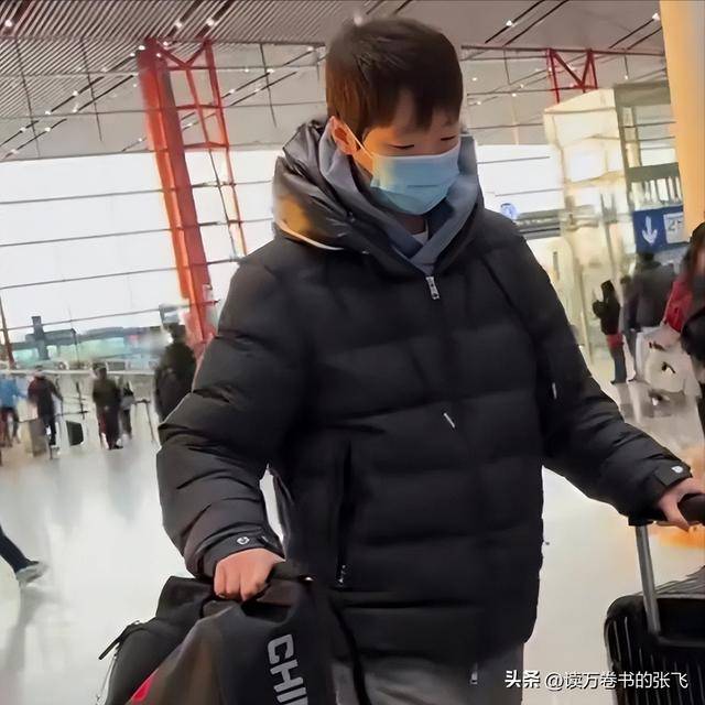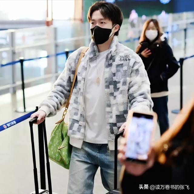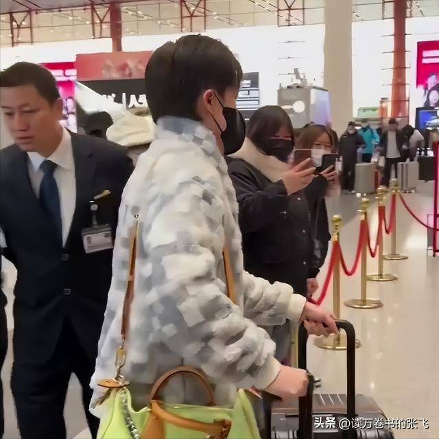 林诗着穿栋厚厚的服绒羽,推着标他志性红大的色行李箱。