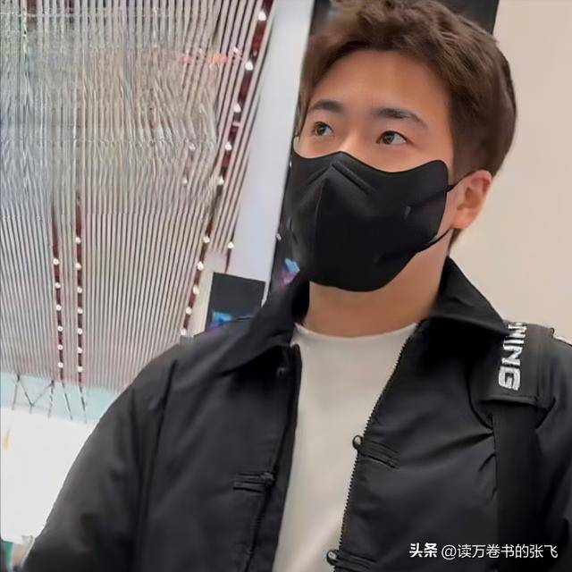 他头发剪修得整齐整齐,虽然着戴口罩然依但显得很神精。