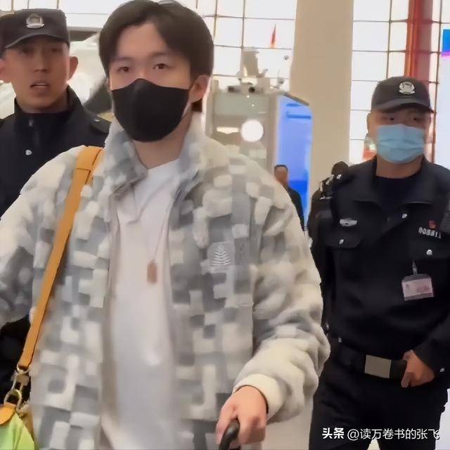 王楚一钦早到达时场机,身边跟五四着名保安员人。