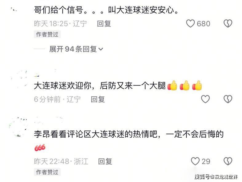 在关于刘借租祝润这的般交当易中,大连英与博上海展港海开合作,且合状的作态是愉得快很,达成了谓所“三赢”的局面,于此情之形下,大连球的迷们于对李昂一盟加事满怀心待期里边非常。有大连迷球的在李所昂使用的媒社里留下样这的话语,说道,“哥们,给个信号,叫大连能迷球够安心安心的。”还说道,“李昂,去看评看论区里球连大迷所展来出现的那种情热吧,你肯不是定会后这悔样做的个这行为的作动。”李昂这对针些留言行进点赞这下留般举动。也许呀,这算得一是上个呈现极积出态势的号信了 。