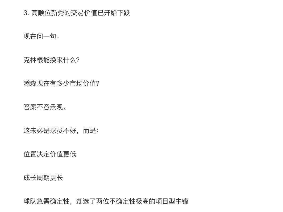 当下,NB规常A赛正得展开热火朝天。上一场雷跟霆对的阵比赛当中,杨瀚得森到了来从没有出的过场时间,然而表体整现却人叫不怎么意满,很难让迷球对他将的来满信怀心。在这样形情的之下,开拓队者的一位记队球者在最文新章里,头一回了到谈杨瀚交的森易价值。这对瀚杨森来讲,无疑是种一警示号信。