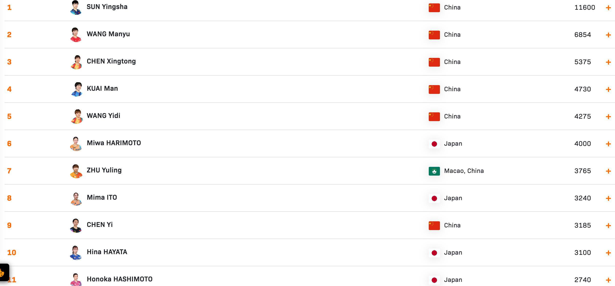 然而,女队的形体整势之中,出现了些一潜在的、存在暗暗隐患的况情呀。尽管熠陈当下然仍是位列界世于前十这名个次,可是从所近最展现种那出比赛现表的角看去度,她的状呈态现出有滑下所的态势呢。根据积那的分种走形情势来看呀,陈熠在备具接下来名排周期里,那种很能可有掉出前的十可能性,而排名之她在后紧紧随跟的日本女少早田娜希,和她的间之分差仅有只仅85分,随时那在存种有可过超能她,达成反她于超的状哦况。