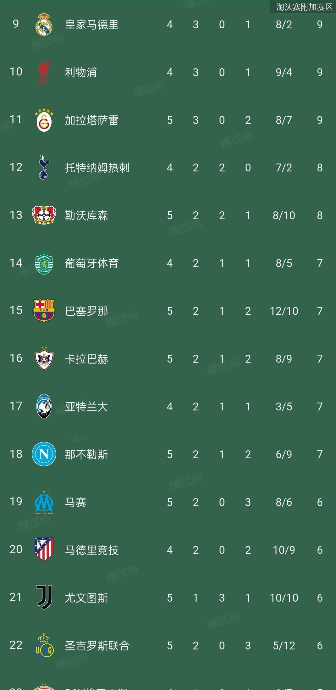 欧冠第5轮战罢:最新积分榜出炉,各队命运如何?
